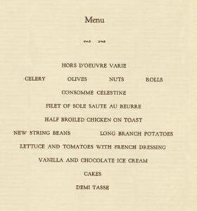 Onun ilk töreninin bir davetiyesi ve yemek menüsünü de gördüm.