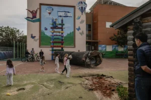 Batı Şeria’da Yahudi yerleşimcilerin bir okulunun bahçesine düşen bir İran füze parçası.