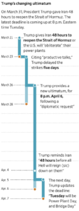 Eğer İran Salı akşamına kadar Hürmüz Boğazı’nı yeniden açmayı kabul etmezse, Trump, köprüleri, enerji santrallerini ve diğer sivil tesisleri hedef alan ve kendi ifadesiyle İran’ı “taş devrine geri gönderecek” büyük bir saldırı başlatmakla tehdit etti. Ancak başkan son haftalarda kendi koyduğu süreleri de uzattı ve dünyanın dört bir yanındaki diplomatlar, Trump’ın tekrar bu saldırıyı ertelemenin bir yolunu bulup bulamayacağını veya bu sefer devasa bir çatışmaya yol açabilecek bir planı uygulayıp uygulamayacağını merak ediyordu.